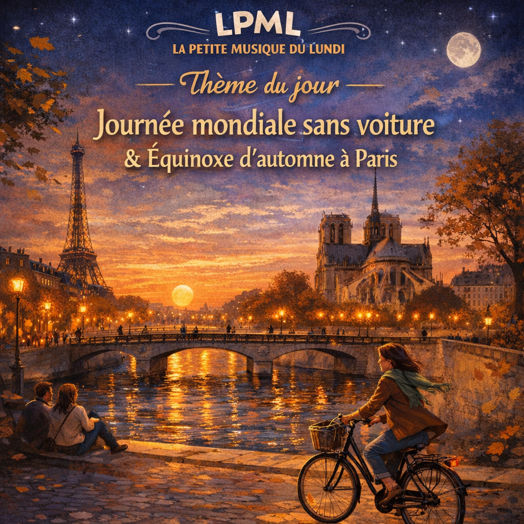 Aujourd’hui, on lève le pied. On traverse la ville à pas doux — ou à vélo — et on écoute battre le monde sans moteurs. 22 septembre, Journée mondiale sans voiture, une respiration pour nos rues… Et ce soir, l’équinoxe d’automne équilibre jour et nuit autour de 20h18–20h19 à Paris : un trait d’égalité avant les couleurs chaudes de la saison.
